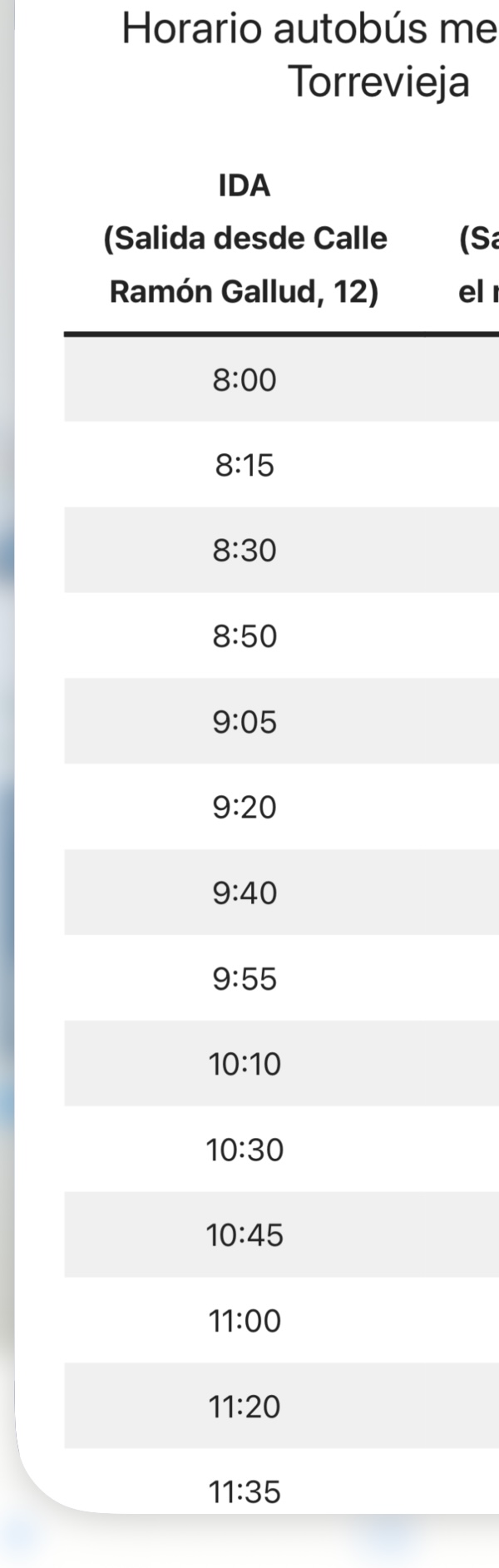 Lördagar: Almoradi, Los Balcones, Santa Pola, Elche, Alicante, Villajoyosa,
